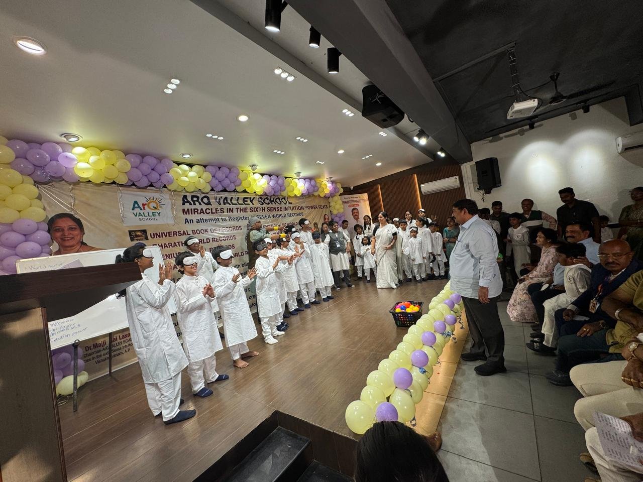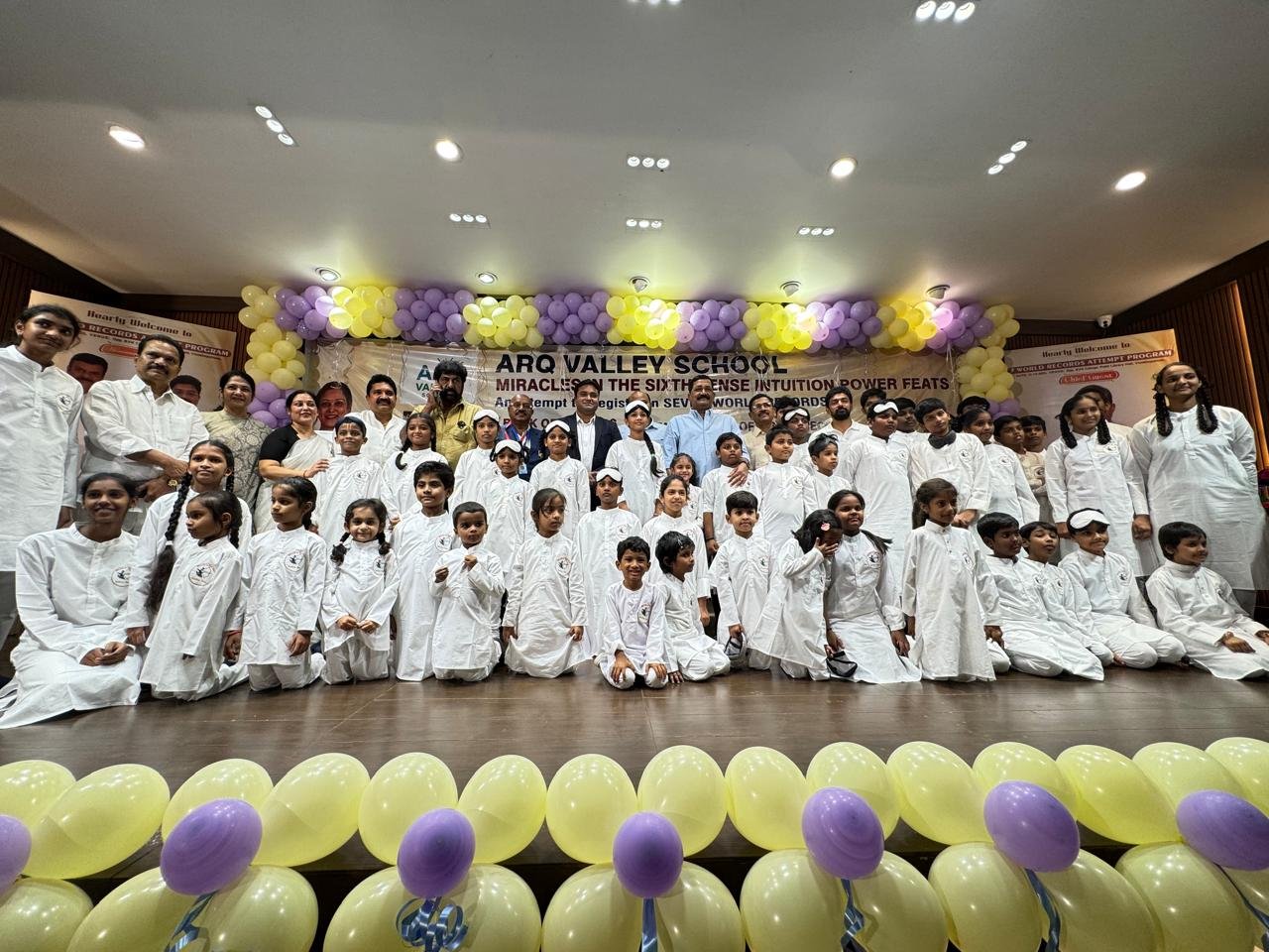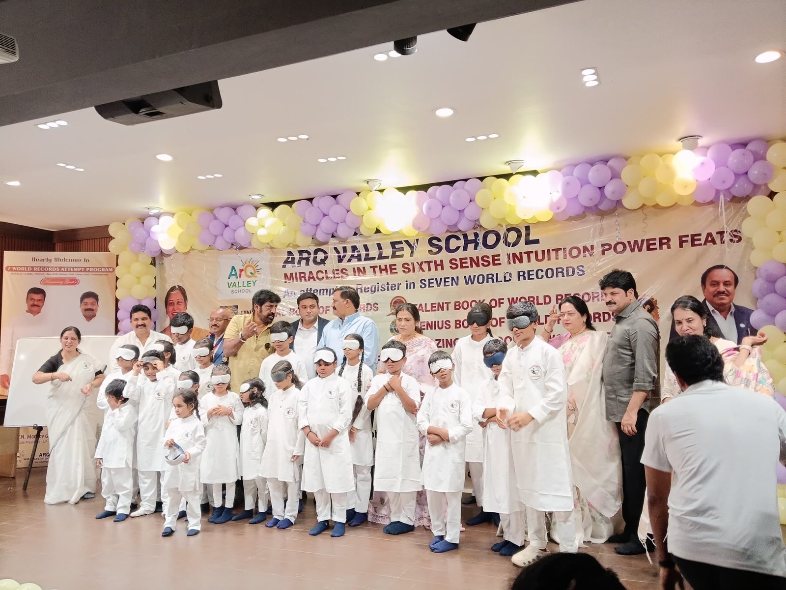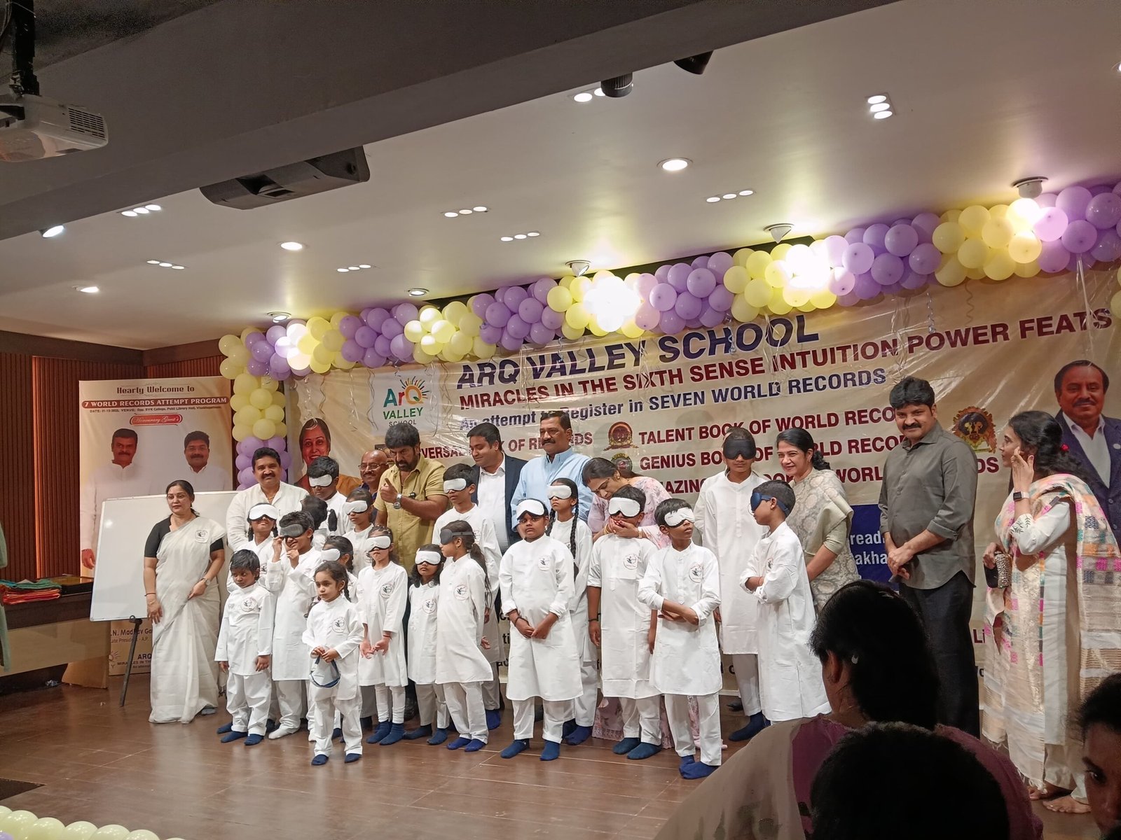 Speaking as the chief guest at the programme, MLA Ganta Srinivasa Rao congratulated the ARQ Valley School students who achieved seven world records and earned a place on the global stage through their extraordinary skills. He appreciated that around 45 students astonished everyone by demonstrating sixth sense abilities while blindfolded. He stated that, to his knowledge, only these students in Andhra Pradesh have achieved such a remarkable feat. He also congratulated the school Chairperson, Dr. Majji Sai Lakshmi, for shaping the students in such an exceptional manner.