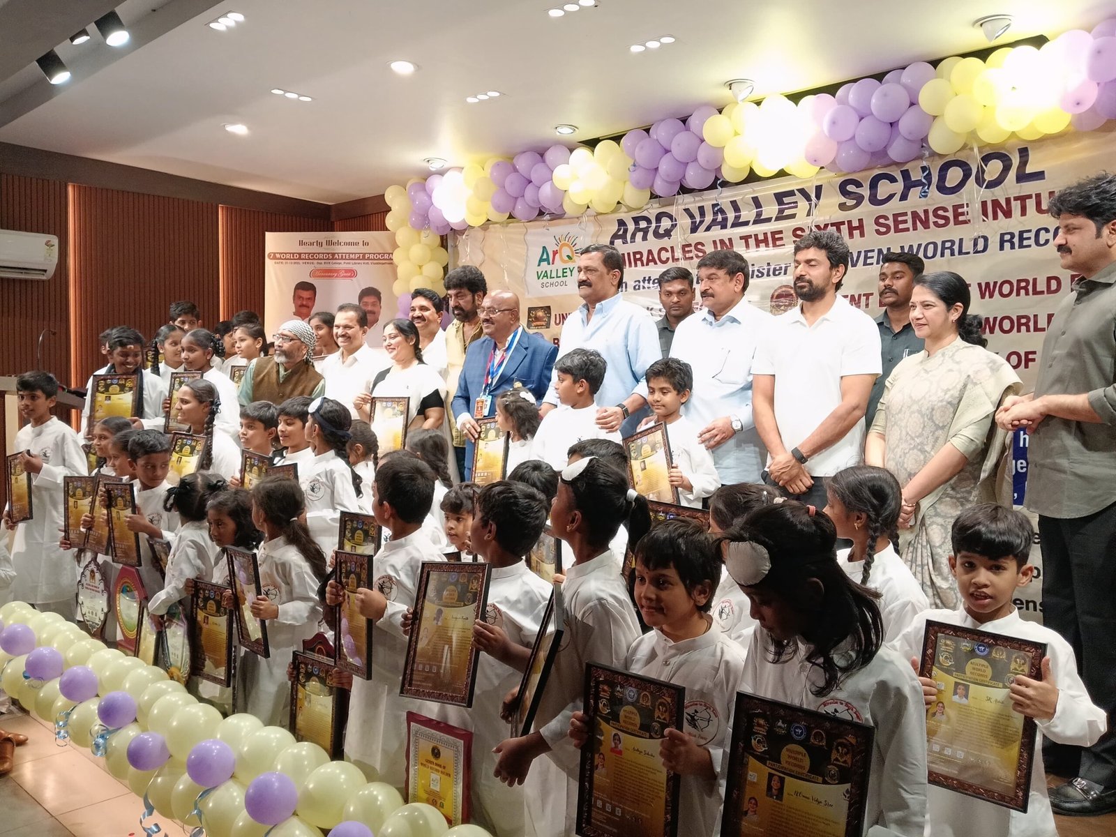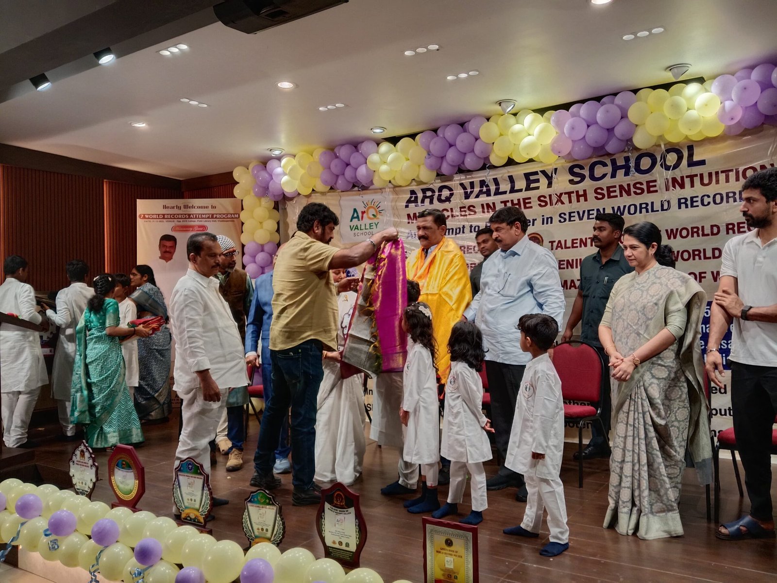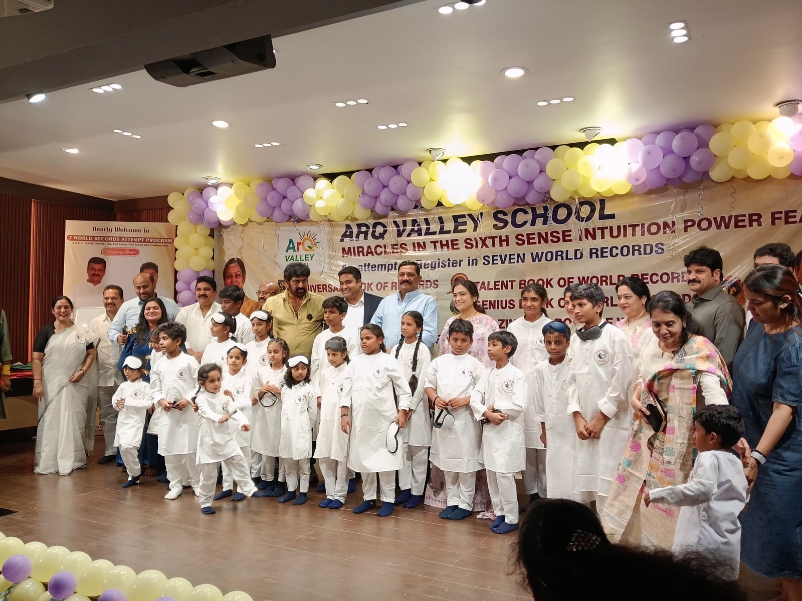 ARQ Valley School Chairperson Dr. Majji Sai Lakshmi stated that their students proved that anything can be achieved through practice. She said that the main objective of the programme was to make the impossible possible. She explained that everyone has inner power, and if it is used properly, it helps individuals grow mentally and physically and achieve completeness in life. She expressed great happiness that their students achieved seven world records through this programme and conveyed her gratitude to all the guests who attended and blessed the children.