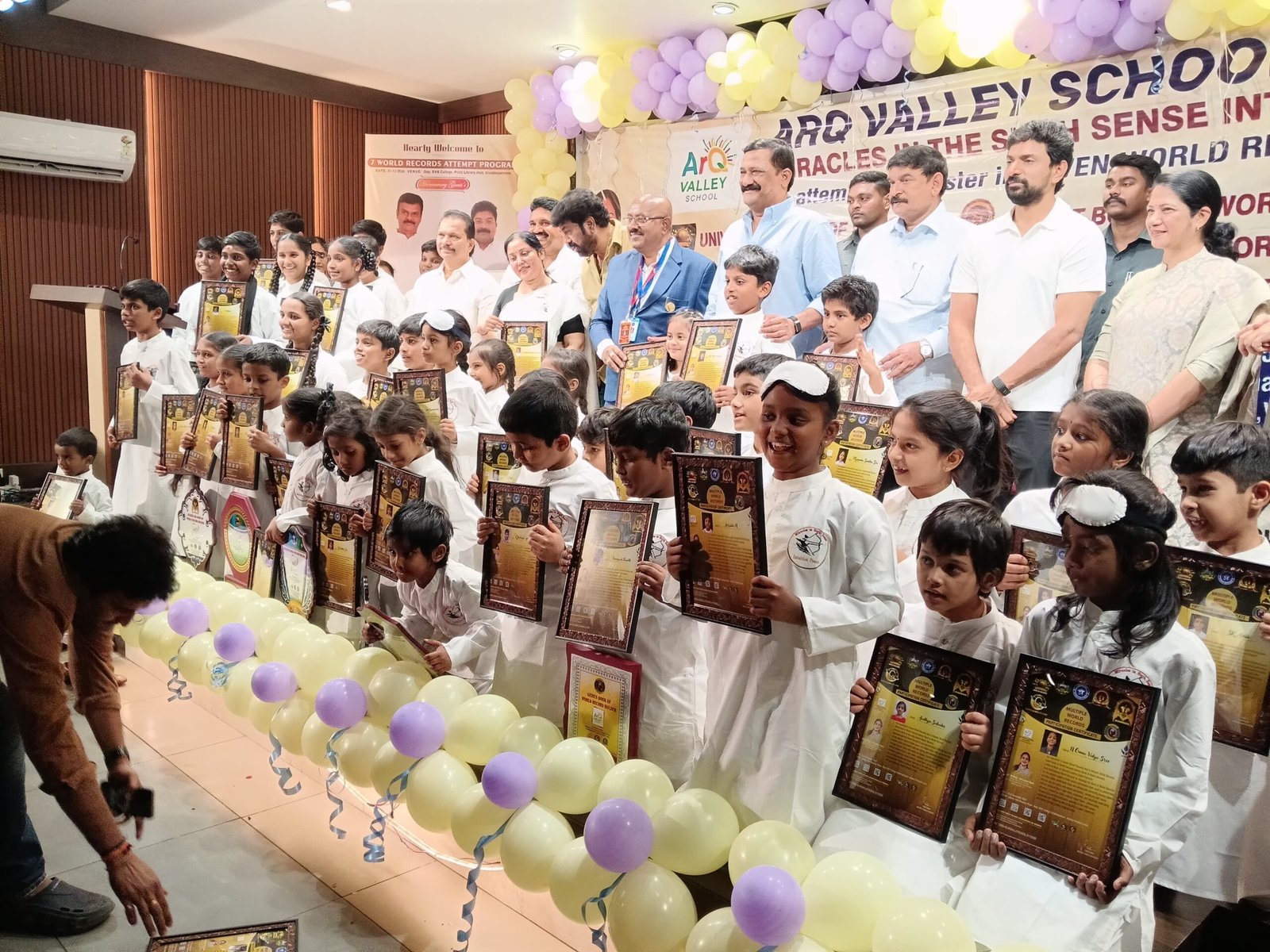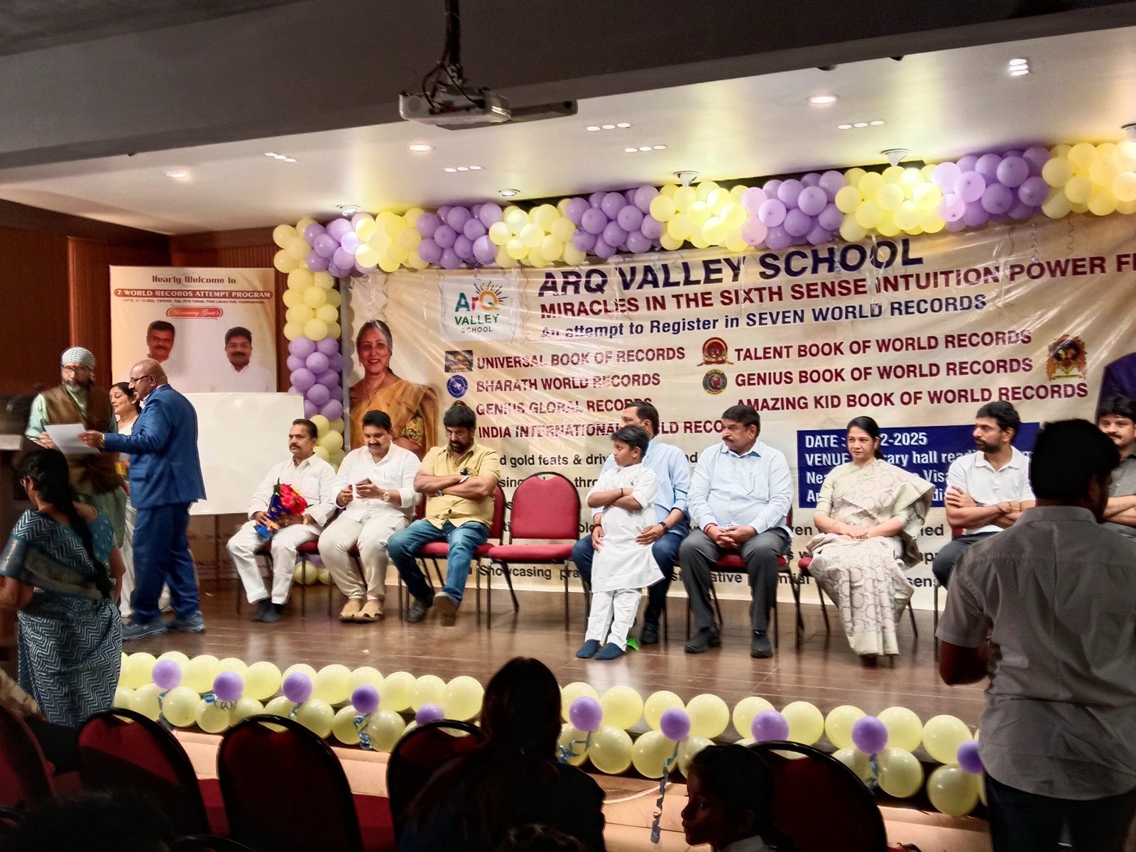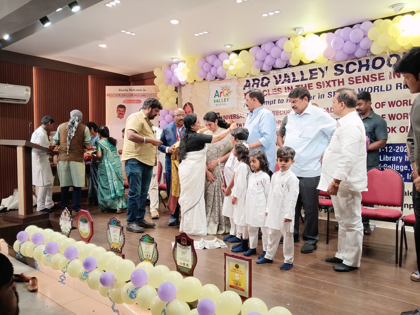 ARQ Valley School Chairperson Dr. Majji Sai Lakshmi stated that their students proved that anything can be achieved through practice. She said that the main objective of the programme was to make the impossible possible. She explained that everyone has inner power, and if it is used properly, it helps individuals grow mentally and physically and achieve completeness in life. She expressed great happiness that their students achieved seven world records through this programme and conveyed her gratitude to all the guests who attended and blessed the children.